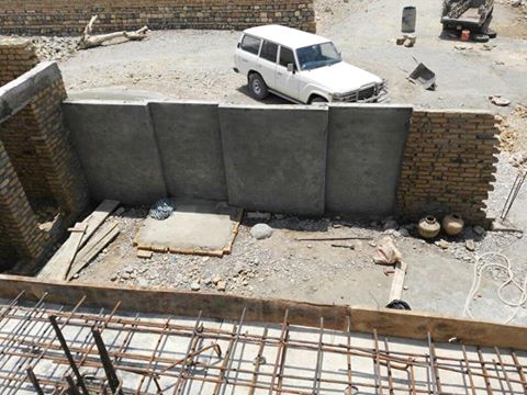 Construction work is underway on Government Primary School Muhallah Hassan Raheja, Ab-e-gum District Kachi.